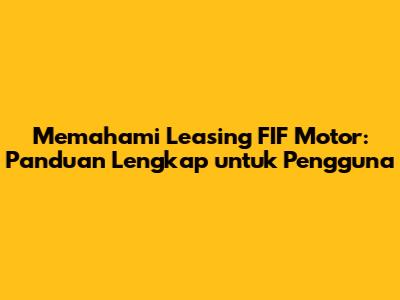 Memahami Leasing FIF Motor: Panduan Lengkap Untuk Pengguna