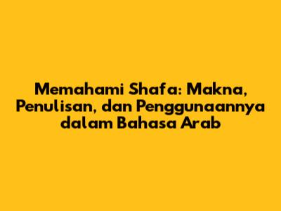 Memahami Shafa: Makna, Penulisan, Dan Penggunaannya Dalam Bahasa Arab