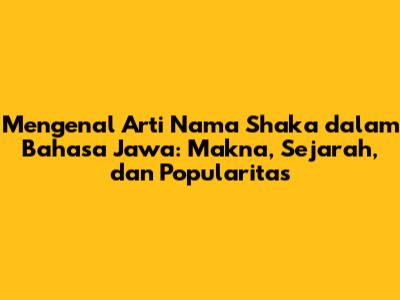 Nama Shaka adalah nama yang memiliki daya tarik tersendiri, terutama bagi mereka yang tertarik dengan budaya Jawa. Nama ini tidak hanya indah secara fonetis, tetapi juga menyimpan makna mendalam yang terkait dengan sejarah dan filosofi Jawa. Artikel ini akan mengupas tuntas tentang arti nama Shaka dalam bahasa Jawa, sejarahnya, serta popularitasnya di kalangan masyarakat.