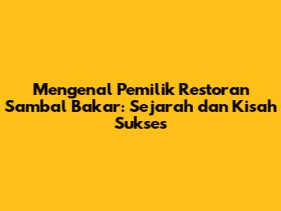 Mengenal Pemilik Restoran Sambal Bakar: Sejarah Dan Kisah Sukses