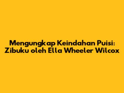 Mengungkap Keindahan Puisi: Zibuku Oleh Ella Wheeler Wilcox