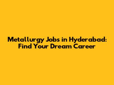 Metallurgy Jobs In Hyderabad: Find Your Dream Career
