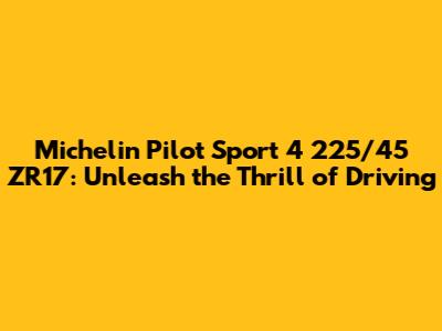 Hey guys! Are you looking for a tire that can seriously upgrade your driving experience? Let's dive deep into the Michelin Pilot Sport 4 225/45 ZR17, a tire that's been making waves in the performance tire market. This isn't just another piece of rubber; it's a carefully engineered product designed to deliver exceptional grip, handling, and overall driving pleasure. Whether you're navigating city streets or hitting the open road, the Pilot Sport 4 promises to transform your ride. We're going to break down what makes this tire so special, covering everything from its key features and benefits to how it stacks up against the competition. Buckle up, because you're about to get the lowdown on why the Michelin Pilot Sport 4 225/45 ZR17 might just be the perfect tire for your needs. So, stick around and let's explore the world of high-performance tires together! The Michelin Pilot Sport 4 225/45 ZR17 is engineered with a focus on delivering a dynamic driving experience. Its tread pattern is optimized to provide exceptional grip in both wet and dry conditions, giving drivers confidence and control in various weather scenarios. The tire's construction incorporates high-quality materials that enhance its responsiveness and handling capabilities, allowing for precise steering and cornering. Additionally, the Pilot Sport 4 is designed for durability, ensuring a long lifespan and consistent performance over time. These features collectively contribute to a tire that not only enhances the vehicle's performance but also provides a comfortable and safe driving experience.