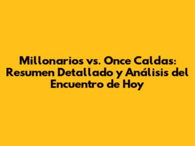 ¡Hola, fanáticos del fútbol! ¿Están listos para un resumen completo del emocionante partido entre Millonarios y Once Caldas? Como todos sabemos, cada encuentro es una historia llena de emoción, estrategias y momentos inolvidables. En este artículo, vamos a sumergirnos en los detalles del juego de hoy, analizar el desempeño de ambos equipos y destacar los momentos clave que definieron el resultado. Así que, prepárense para un análisis profundo, porque aquí les traemos todo lo que necesitan saber sobre el enfrentamiento entre estos dos gigantes del fútbol colombiano.