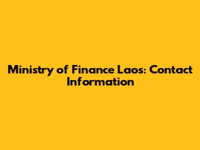 Ministry Of Finance Laos: Contact Information