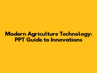 Modern Agriculture Tech: PPT Guide To Innovations