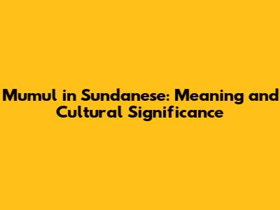 Mumul In Sundanese: Meaning And Cultural Significance