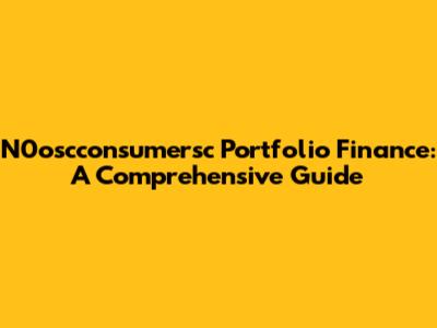 N0oscconsumersc Portfolio Finance: A Comprehensive Guide