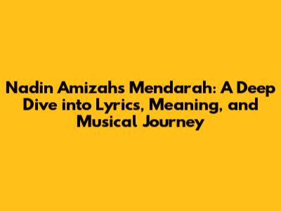 Hey guys! Ever found yourself completely captivated by a song? Yeah, me too! And today, we're gonna dive headfirst into one such song: "Mendarah" by the incredibly talented Nadin Amizah. This song isn't just a collection of words and melodies; it's a journey, a feeling, and a story all rolled into one. So, grab your headphones, get comfy, and let's explore the intricate world of "Mendarah", breaking down the lyrics, exploring the meaning, and appreciating the musical genius behind it. This is gonna be fun!