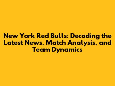 Match Analysis: Breaking Down the Red Bulls' Performances