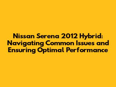 Many Nissan Serena 2012 Hybrid owners have reported specific recurring issues that are worth noting. These problems range from hybrid system malfunctions to more conventional automotive concerns. Addressing these issues promptly can prevent further damage and ensure a safer driving experience.