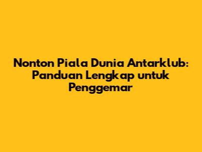 Nonton Piala Dunia Antarklub: Panduan Lengkap Untuk Penggemar