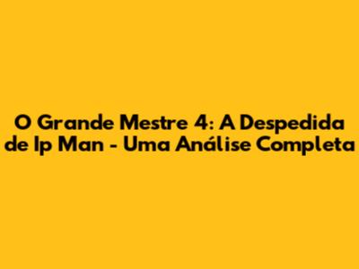 • O Grande Mestre 4 marca o desfecho da saga de Ip Man, com Donnie Yen no papel principal. É um filme de ação e artes marciais com grande profundidade emocional. A sinopse detalha a jornada de Ip Man aos EUA e os desafios enfrentados. O elenco é estelar, com atuações marcantes e cenas de luta coreografadas. O filme está dublado e legendado, disponível em plataformas de streaming e para baixar. As críticas foram positivas, com elogios à atuação de Yen e à direção de Wilson Yip. O filme aborda temas como honra, família e cultura. Se você procura onde assistir, as opções incluem plataformas de streaming e sites de download legalizados. O trailer oferece uma prévia empolgante do filme. A história e os personagens são complexos e cativantes. O Grande Mestre 4 é um final memorável para a saga, recomendando a todos os fãs de filmes de artes marciais.