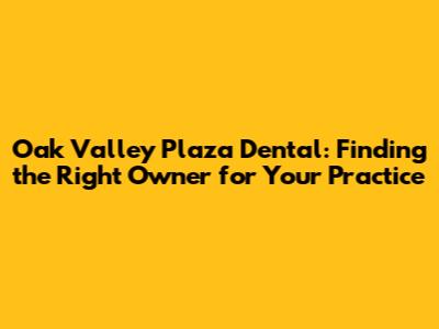 Oak Valley Plaza Dental: Find The Right Owner