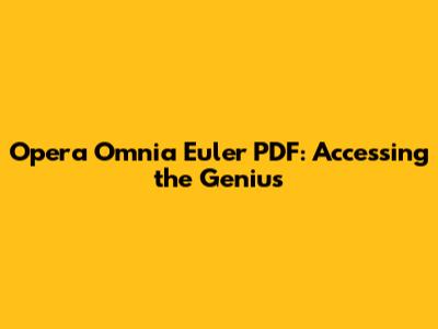 Opera Omnia Euler PDF: Accessing The Genius