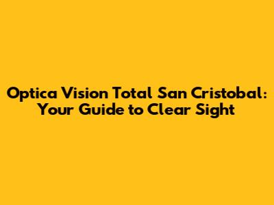 Hey everyone! Are you in San Cristobal and searching for top-notch eye care? Well, you're in luck! This article is all about Optica Vision Total San Cristobal, and trust me, guys, it's a game-changer for your vision needs. We're going to dive deep into what makes this place special, the services they offer, and why they're a go-to spot for the community. Get ready to have your vision (and your understanding) crystal clear!