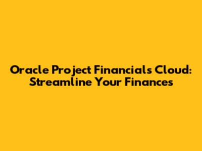Oracle Project Financials Cloud: Streamline Your Finances