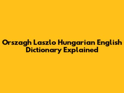 Orszagh Laszlo Hungarian English Dictionary Explained