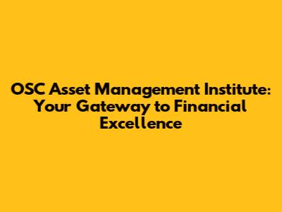 OSC Asset Management Institute: Your Path To Financial Mastery