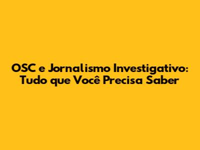 OSC E Jornalismo Investigativo: Tudo Que Você Precisa Saber