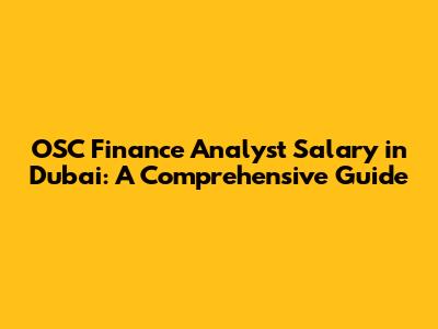 OSC Finance Analyst Salary In Dubai: What You Need To Know