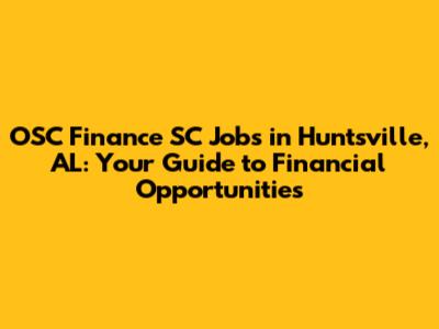 OSC Finance Jobs: Opportunities In Huntsville, AL