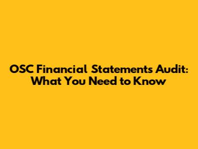 OSC Financial Statements Audit: What You Need To Know