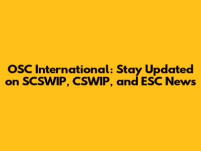 OSC International: Latest SCSWIP, CSWIP, And ESC News