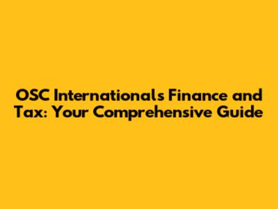 OSC International's Finance And Tax: Your Comprehensive Guide