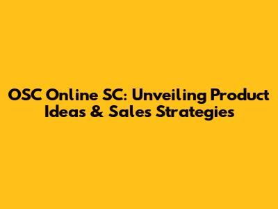 OSC Online SC: Unveiling Product Ideas & Sales Strategies