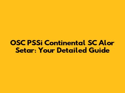OSC PSSi Continental SC In Alor Setar: Your Detailed Guide