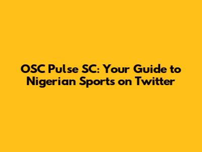 OSC Pulse SC: Your Guide To Nigerian Sports On Twitter