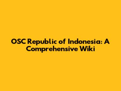 OSC Republic Of Indonesia: A Comprehensive Wiki