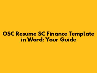 OSC Resume SC Finance Template In Word: Your Guide