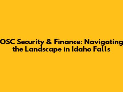 OSC Security & Finance: Idaho Falls Insights
