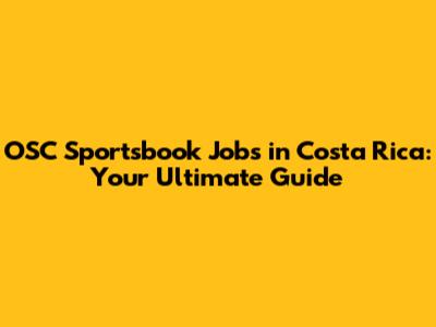 OSC Sportsbook Jobs In Costa Rica: Your Ultimate Guide
