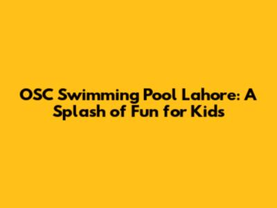 OSC Swimming Pool: A Splash Of Fun For Kids In Lahore