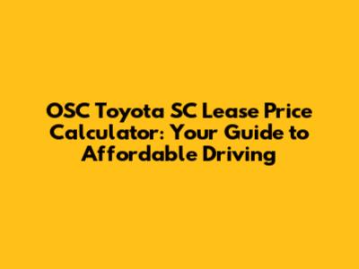 OSC Toyota SC Lease Price Calculator: Your Guide To Affordable Driving