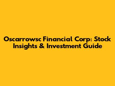 Oscarrowsc Financial Corp: Stock Insights & Investment Guide