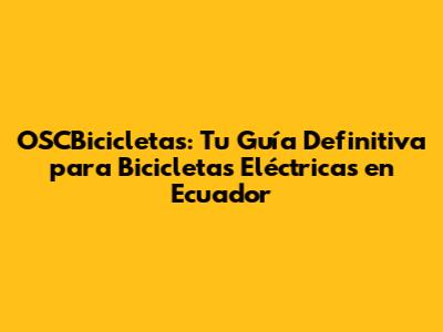 OSCBicicletas: Guía Completa De Bicicletas Eléctricas En Ecuador