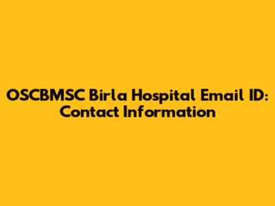 OSCBMSC Birla Hospital Email ID: Contact Information