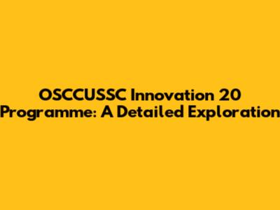 The OSCCUSSC Innovation 20 Programme isn't just some vague concept; it has very specific, measurable goals. Here are some of its key objectives: