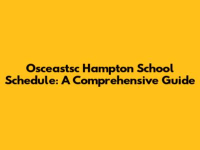Osceastsc Hampton School Schedule: A Comprehensive Guide
