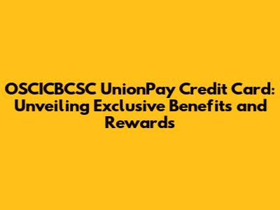 Deep Dive into the Benefits: Exploring the Advantages of the OSCICBCSC UnionPay Credit Card