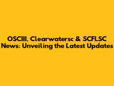 OSCIII, Clearwatersc & SCFLSC News: Unveiling The Latest Updates
