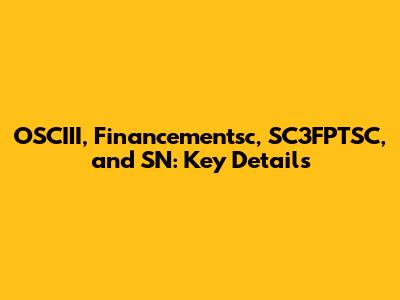 OSCIII, Financementsc, SC3FPTSC, And SN: Key Details