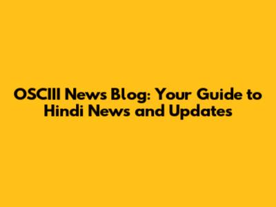 OSCIII News Blog: Your Guide To Hindi News And Updates