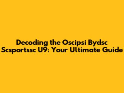 Decoding the Oscipsi Bydsc Scsportssc U9: Your Ultimate Guide