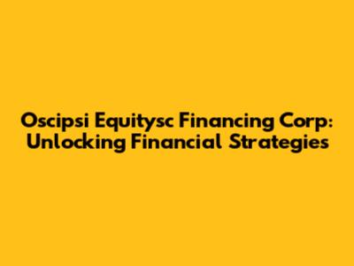 So, why should you care about Oscipsi Equitysc Financing Corp? What makes them significant in the broader financial landscape? Here's the lowdown: