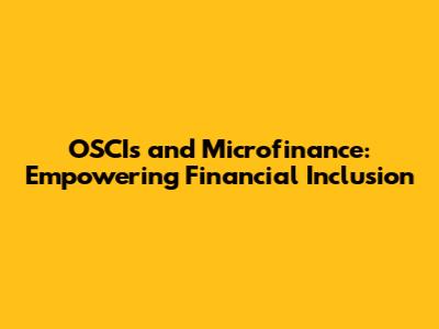 OSCIs And Microfinance: Empowering Financial Inclusion